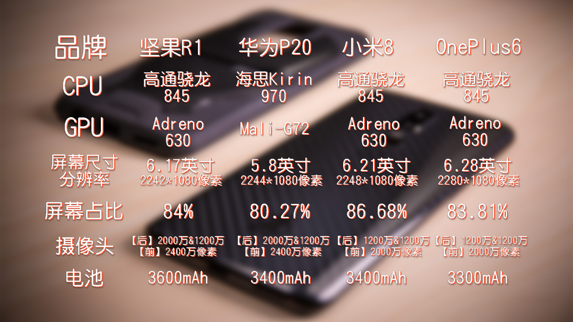 其实,近两个月内国内各大手机厂商纷繁推出了自家的旗舰级手机。动点科技也将近期备受群众重视的锤子科技坚果 R1、华为 P20、小米 8 以及 OnePlus 6 手机的相关功用参数以对比列表的方式作出出现。